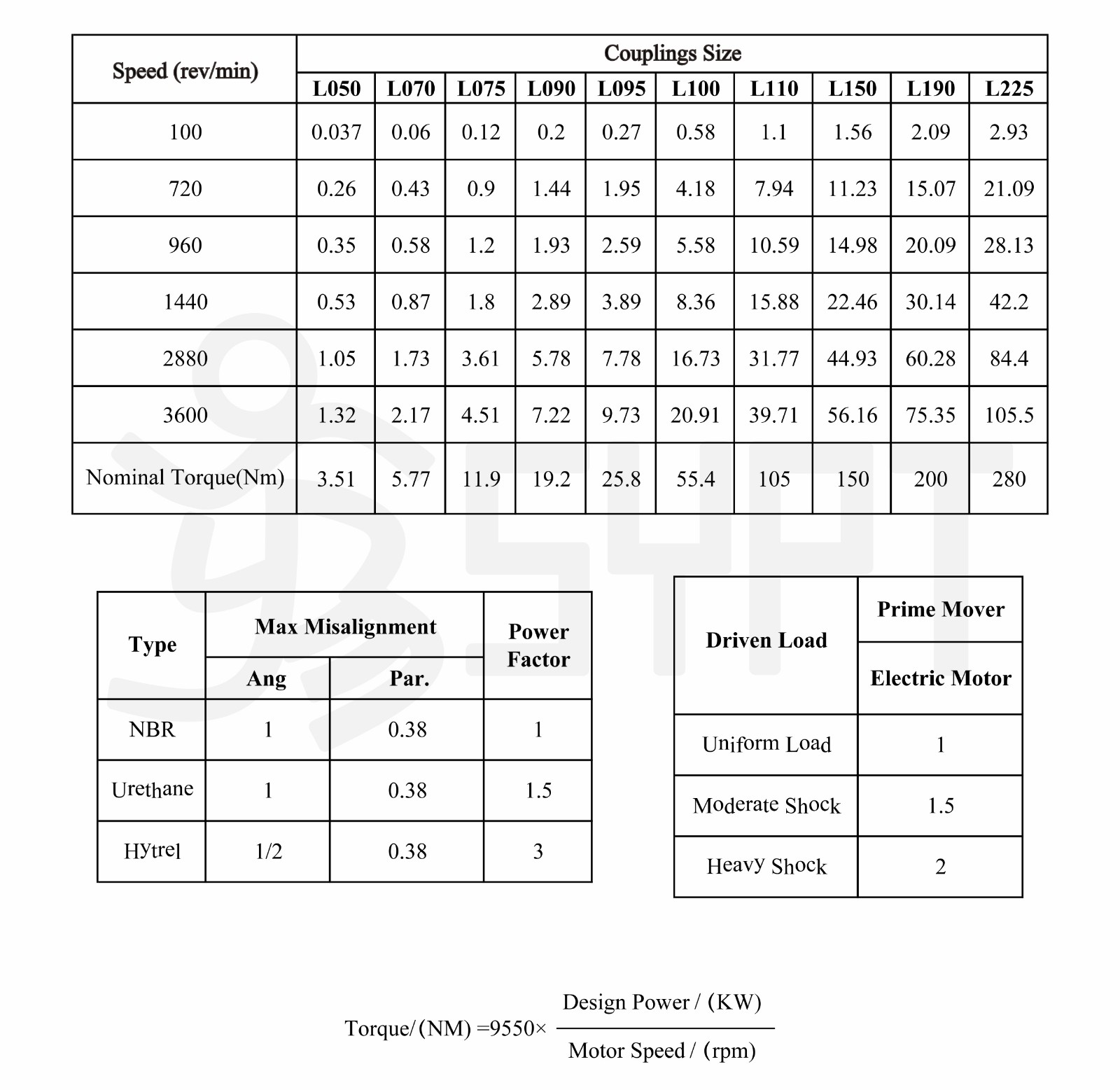 Product parameters
